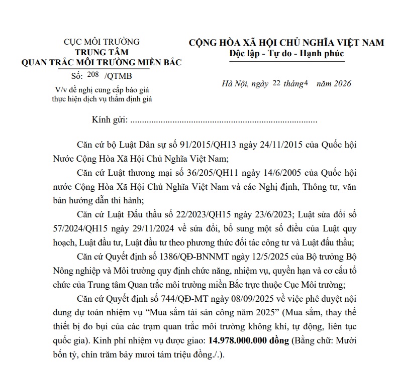 Trung tâm quan trắc môi trường miền bắc