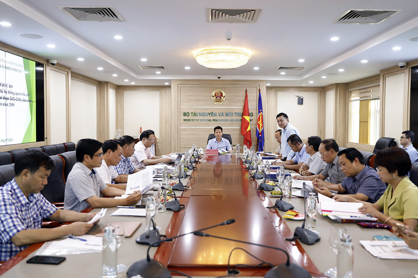 Tham dự cuộc họp có các đồng chí Ủy viên Ban cán sự Đảng, Thứ trưởng Bộ Tài nguyên và Môi trường: Võ Tuấn Nhân, Trần Quý Kiên, Lê Công Thành cùng lãnh đạo các đơn vị có liên quan trực thuộc Bộ Tài nguyên và Môi trường.